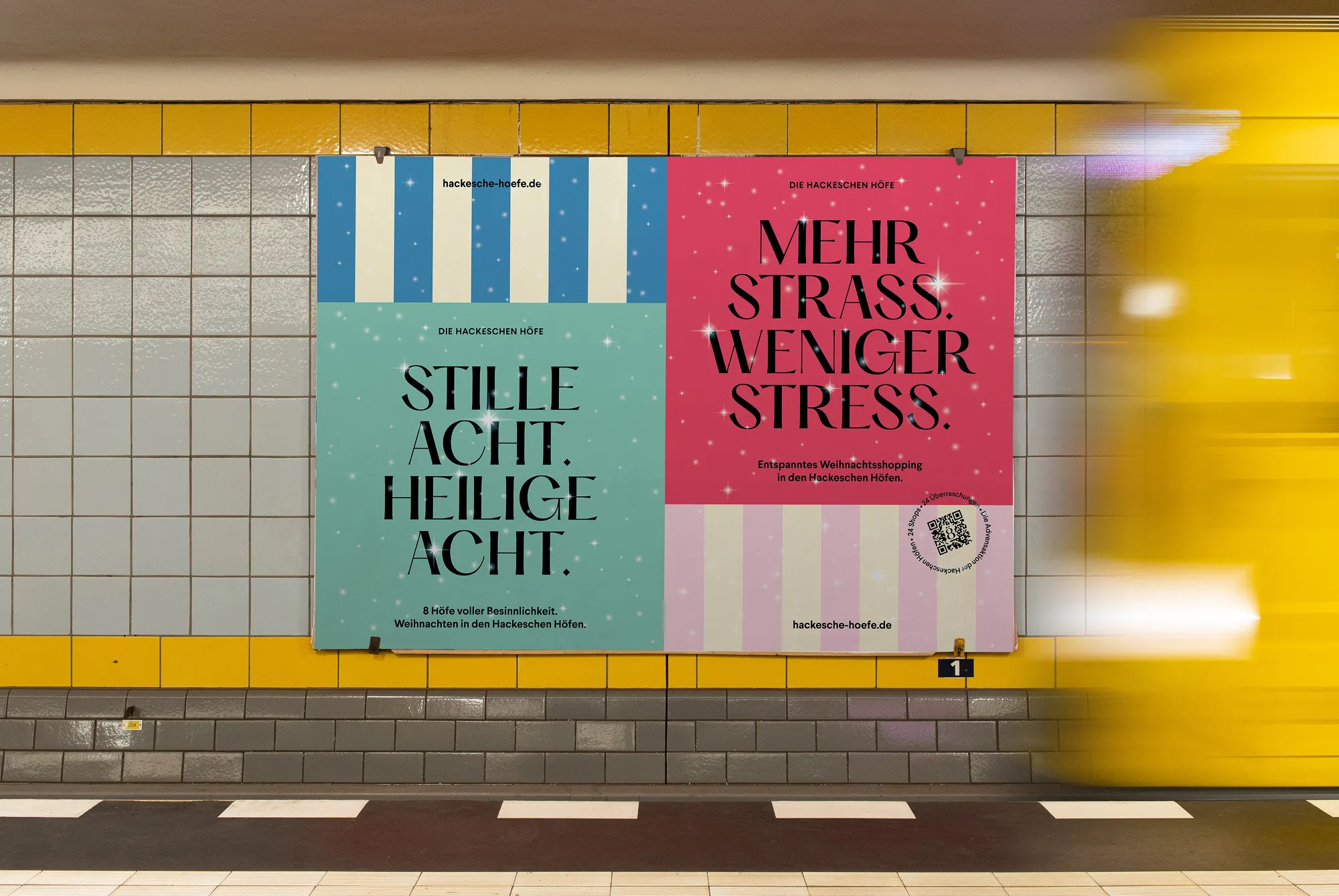 Die Hackeschen Höfe sind weltberühmt – aber vor allem bei Tourist:innen. Viele Berliner:innen meiden den Ort, im Glauben, hier gäbe es nur Souvenirshops und überlaufene Cafés. Doch das Gegenteil ist der Fall: In den acht Höfen findet sich eine dichte, vielfältige Mischung aus unabhängigen Manufakturen, Galerien, Modedesign und Kultur – ein Mikrokosmos für alle, die das Besondere suchen. Unsere Aufgabe war es, dieses Bild zu korrigieren – und die Marke für die Stadtbevölkerung wieder interessant zu machen.