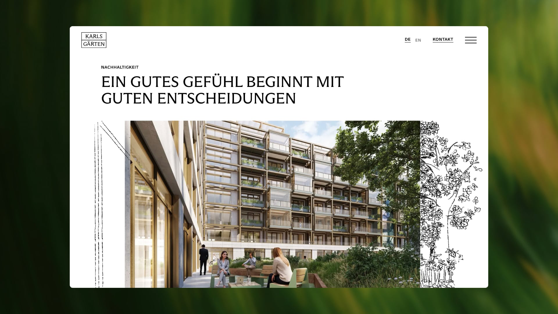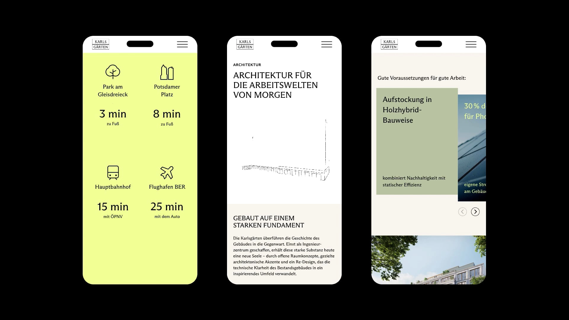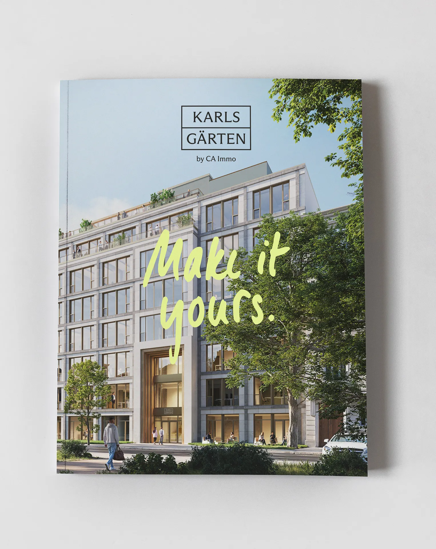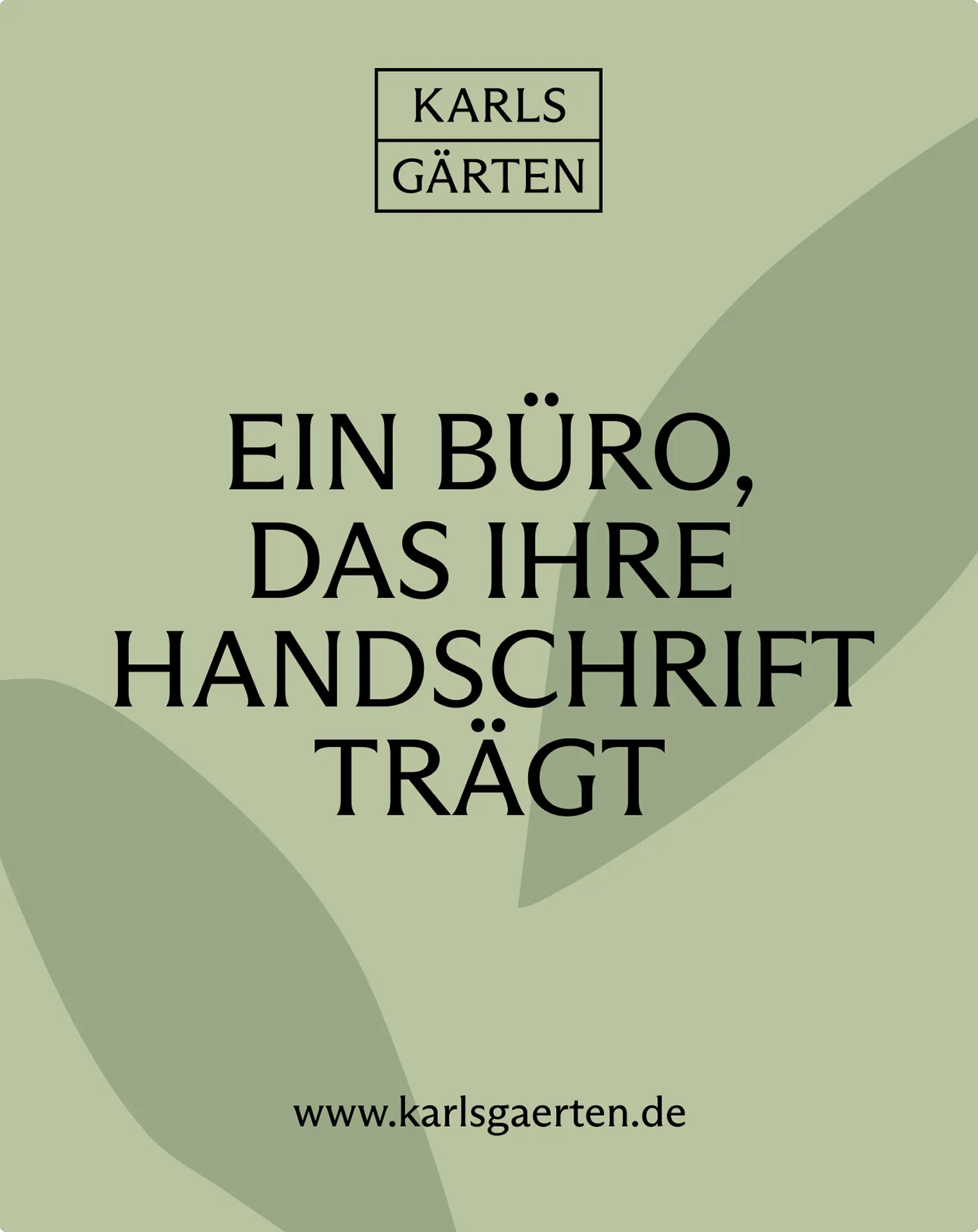 Mitten in Berlin, nur wenige Schritte vom Tiergarten und dem Potsdamer Platz entfernt, entsteht mit Karlsgärten eine besondere Office-Immobilie – ein Ort des Rückzugs und der Inspiration zugleich. Das Konzept: Boutique statt Standard. Flexible Flächen, hochwertige Ausstattung, individuelle Gestaltung. Unter dem Motto „Make it yours“ wird Individualität auch im Branding zum Prinzip – das Logo passt sich an seine Nutzer an: aus Karlsgärten werden Toms Gärten, Müllers Gärten oder einfach meine Gärten.