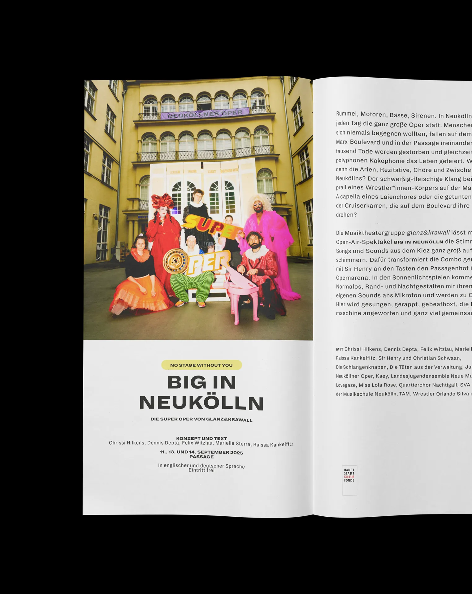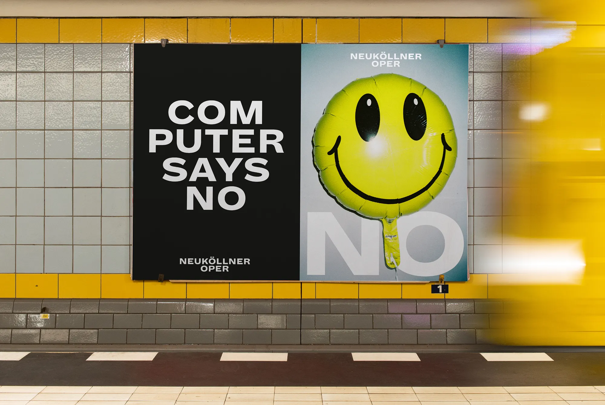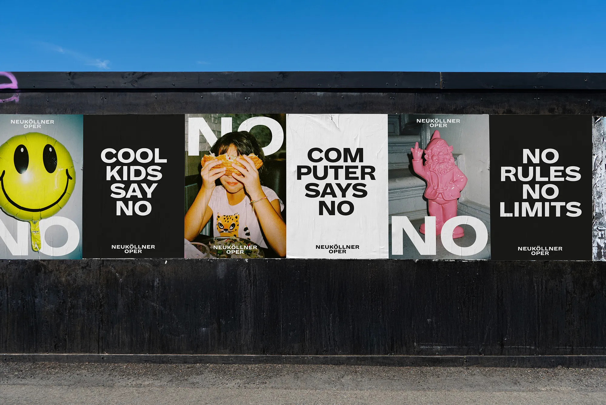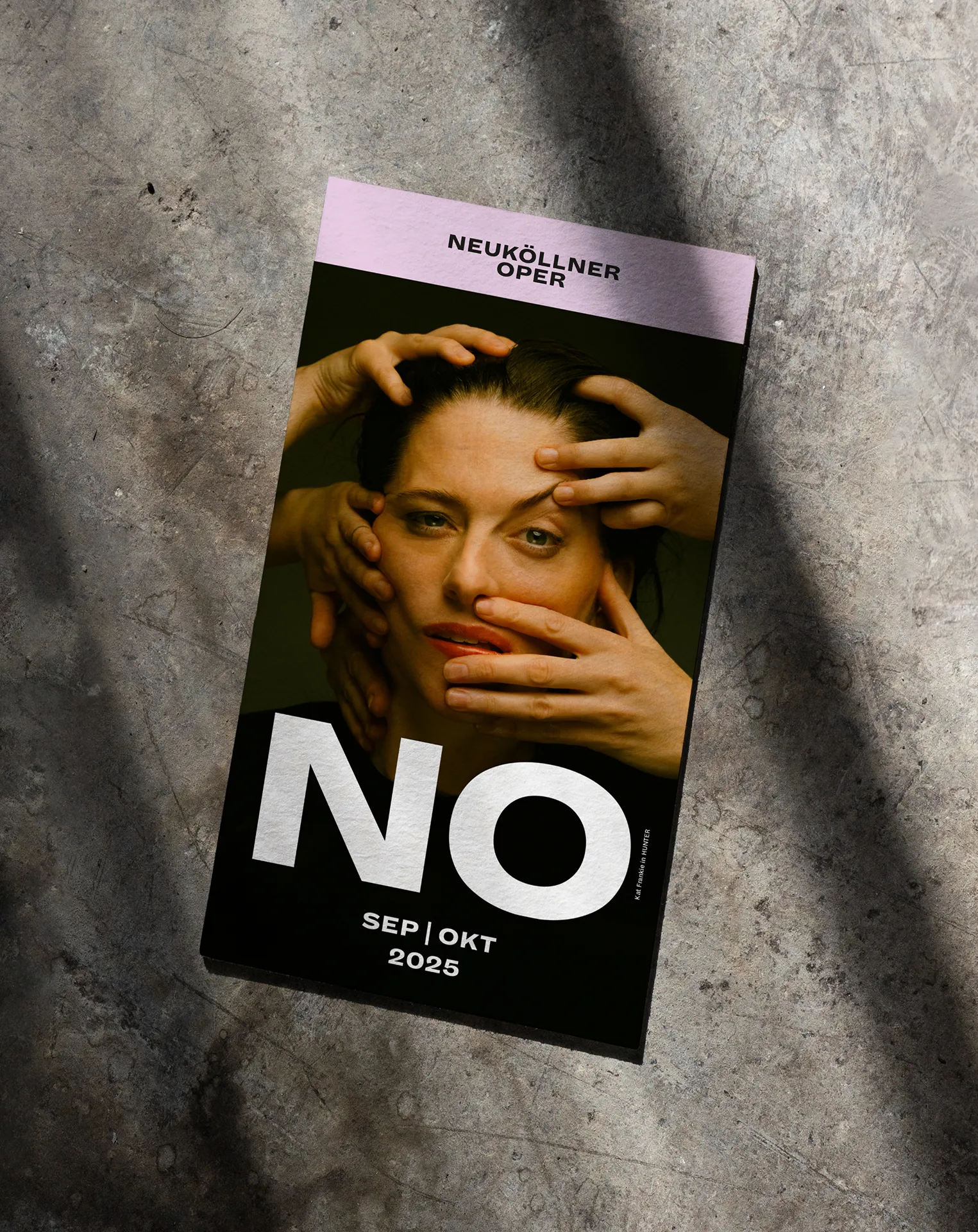 No Branding. But a lot of Identity. Mit neuer kreativer Leitung und Ausrichtung startet die Neuköllner Oper in die Spielzeit 25/26. Wir verantworteten das Rebranding sowie die Einführungskampagne – in enger Zusammenarbeit mit dem renommierten Berliner Fotografen Murat Aslan.Das kurze, prägnante NO ist künftig Monogramm und Statement zugleich – für ein Haus, das anders ist: eigen statt gefällig, das aneckt, herausfordert, experimentiert und immer wieder überrascht.