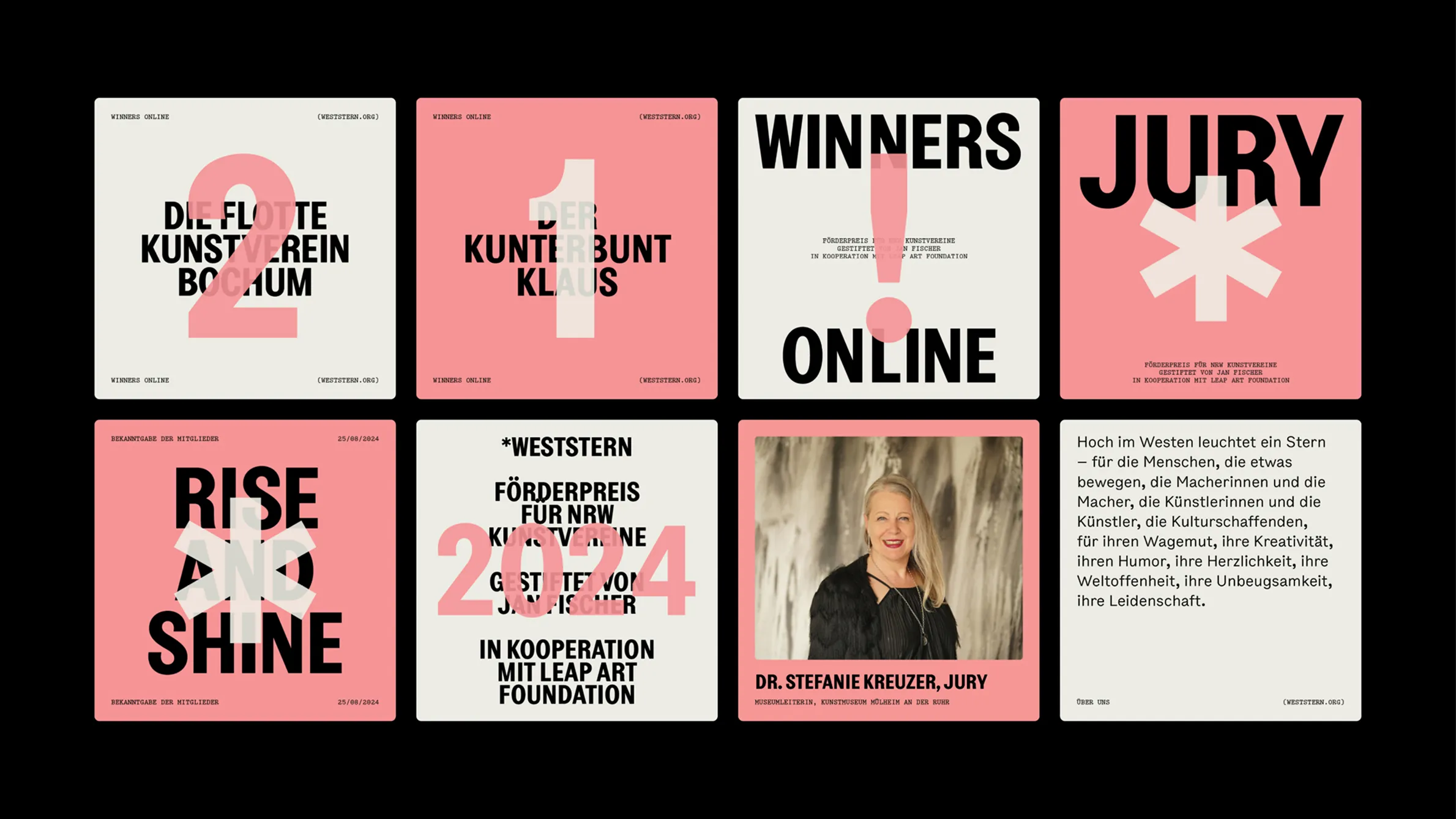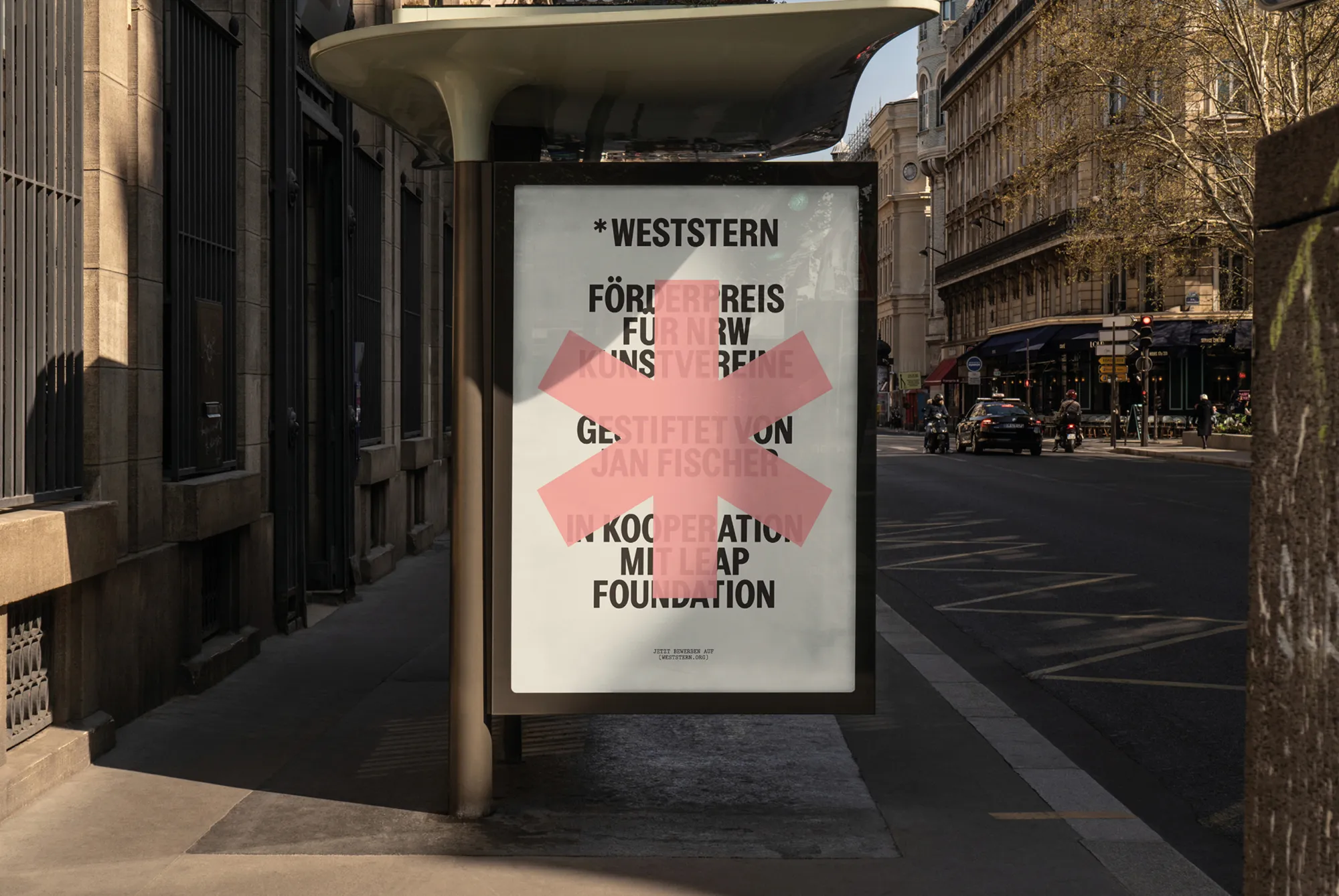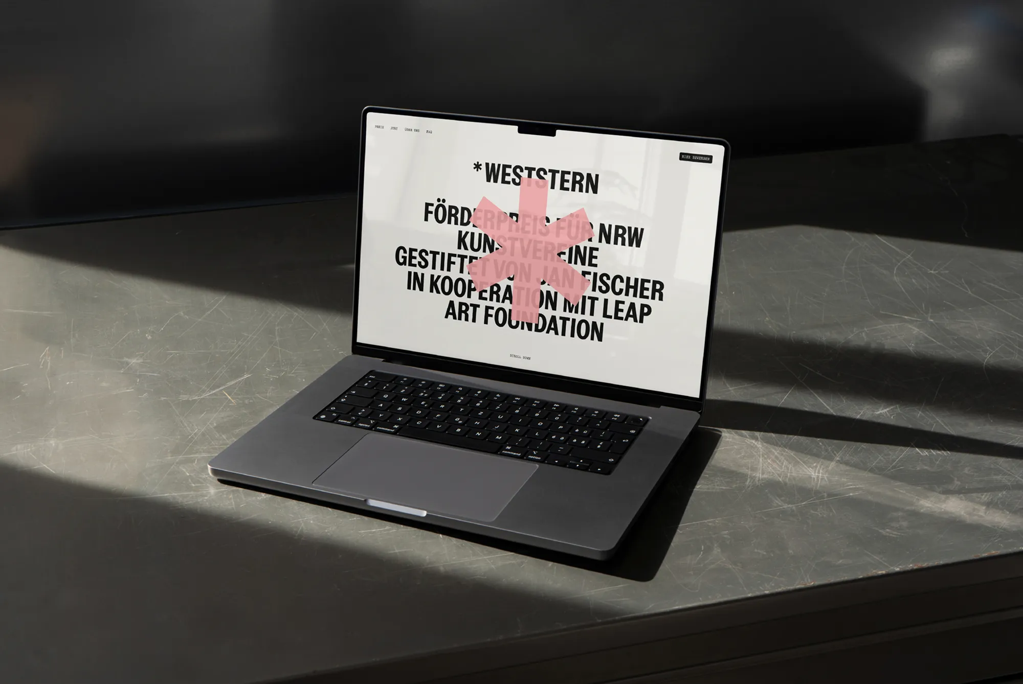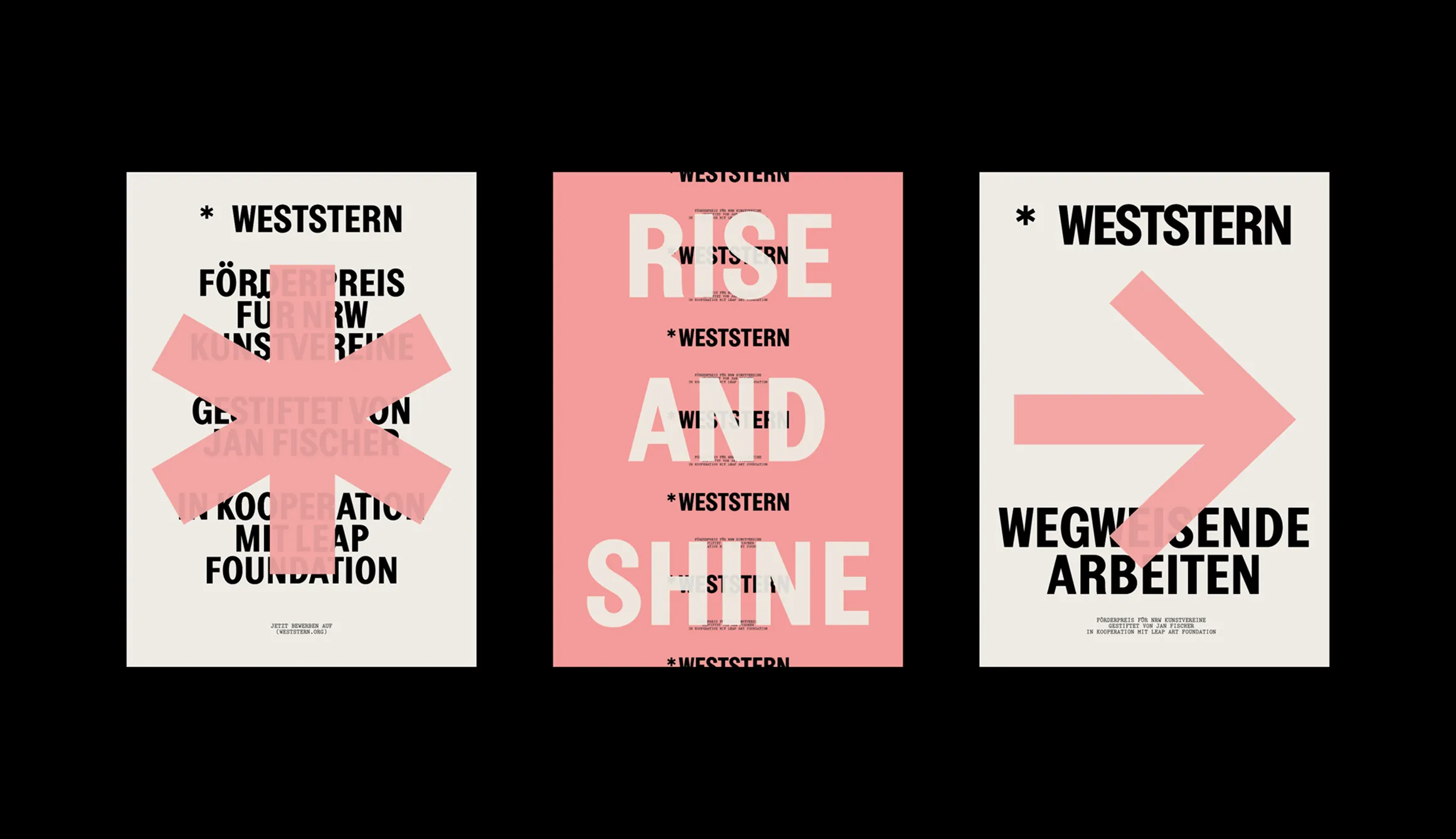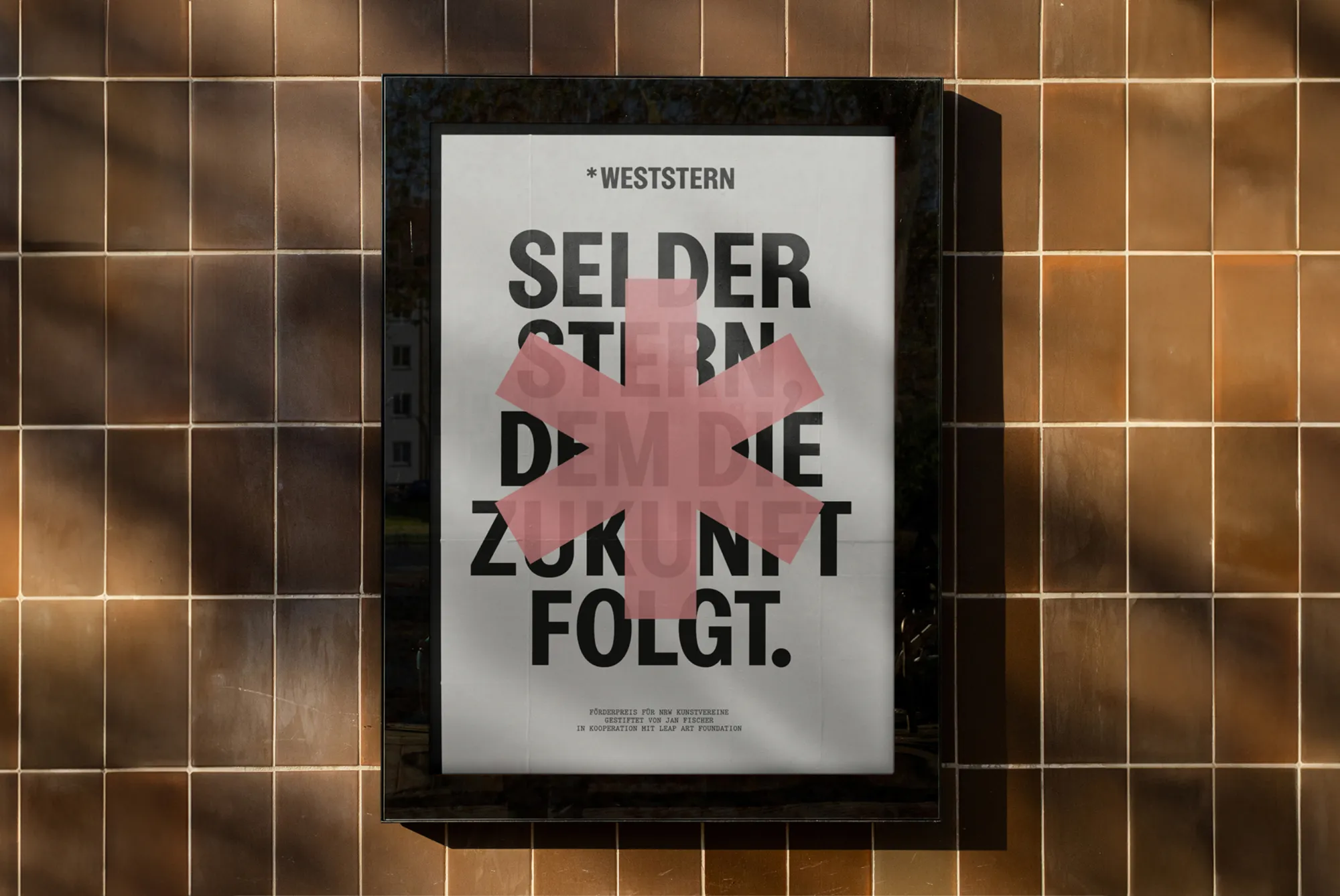 Ein neuer Stern für die Kunst im Westen: Weststern ist der erste hochdotierte Förderpreis, der das Engagement der Kunstvereine in Nordrhein-Westfalen auszeichnet. Smith entwickelte Naming, Brandstory, Design und Kommunikation – in enger Zusammenarbeit mit Stifter Jan Fischer und der LEAP Art Foundation.